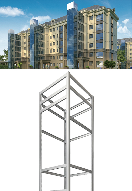 b、該框架一體化電梯不僅適用于各類多層外埋電梯的安裝,還可靈活地 運(yùn)用于室內(nèi)建筑加裝電梯的使用。